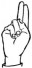 На ћирилици написано ИВАНА ЈОВАНЧЕВИЋ састоји се из 15 слова [?]. Исписано ћириличном једноручном азбуком за глувонеме: